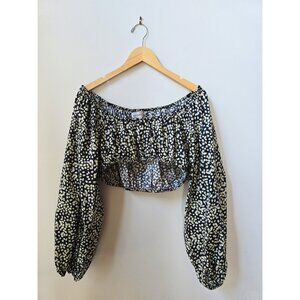 NWT Goop Matteau Cotton Poplin Decolette Cropped Blouse in Midnight Daisy 5 or L