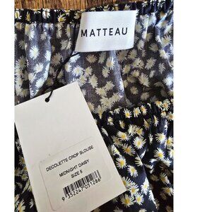 The Decolette Cropped Blouse, by Matteau, is perfect for the summer! Constructed from organic cotton-poplin that features a gorgeous all-over calico daisy print, it has a scooped neckline and gorgeous blouson sleeves. I have the coordinating skirt also listed. Both are brand new with the original store tag attached. I purchased them to wear to an event, but didn't get a change to wear them! They're in excellent condition.