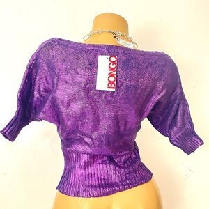 NWT Gorgeous Bongo L Stretch Metallic Purple Dolman Sleeve Round Neck Blouse Top