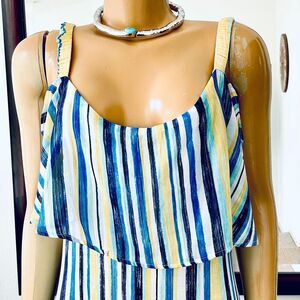 Blue/Yellow/ Green Mint/White striped Maxi dress