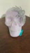 Lavender skull decoration with a glittery silver spider accent. .