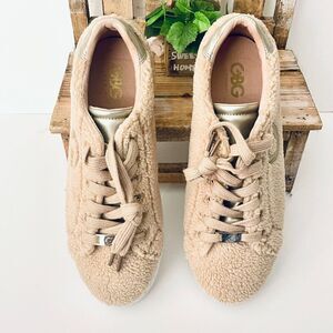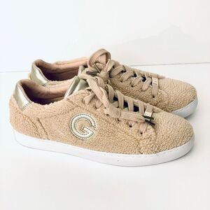 NWT Gorgeous GBG GUESS Los Angeles 10 Beetroot Tan Fur Furry Cushioned Sneakers