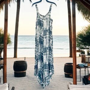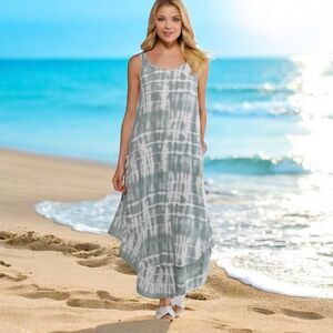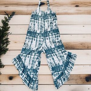 Gorgeous Japna Grey White Tie Dye Boho Gypsie Wide Leg Ruffle Jumpsuit with lateral pockets