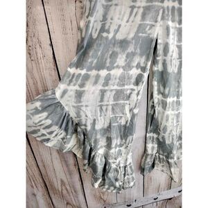 NWT Gorgeous Japna Sz M Grey White Tie Dye Boho Gypsie Wide Leg Ruffle Jumpsuit
