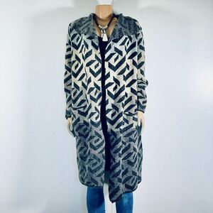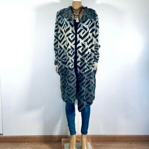 NWT Gorgeous Joseph A Grey Tan & Black Long Soft Coatigan Cardigan Print Sweater