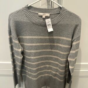 NWT gorgeous LOFT gray and cream striped sweater. More of a tunic length. Perfect for fall!! Smoke free home.