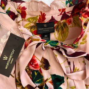 2X NWT Gorgeous Pink Floral Blouse Worthington