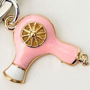 NWT Gorgeous Pink Silver Metal Hairdresser Hairdryer Scissors Keyring Key holder