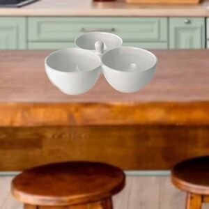White Ceramic set of 3 attached Serving bowls SNACK BITE NIBBLE with top handle & black letters