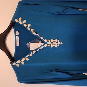 NWT Gorgeous Susan Graver Embellished V-Neck 3/4 Sleeve Blouse