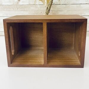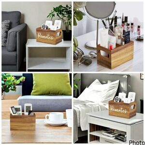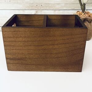 NWT Gorgeous Tan/ Brown Pine Wood Remotes Graphic 2 Slots Minimalist Organizer