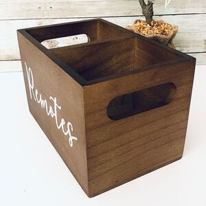 Gorgeous Tan / Brown Pine Wood Remotes Graphic 2 big Slots / Compartments, cubicles, Minimalist Organizer.