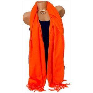 NWT Gorgeous Vintage Apt 9 Neon Orange Large 75”x25” Fringe Scarf Wrap Pashmina