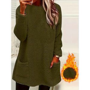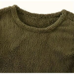Olive / Military Green Sherpa Like Fuzzy Teddy Pullover Sweatshirt Graphic Top.