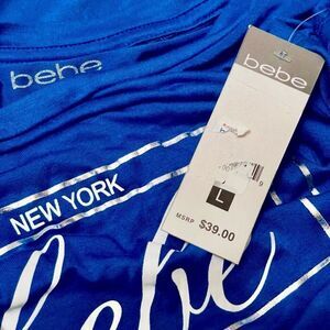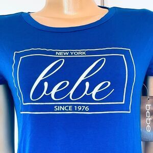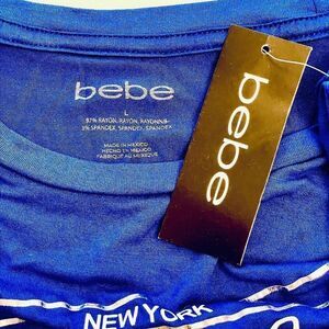 NWT Gorgeous bebe New York Sz L Navy Blue Seamless Stretchy Short Sleeve T-Shirt