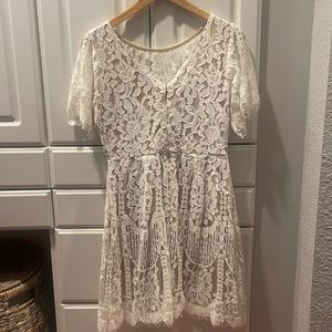 NWT Gorgeous white ethereal lace mini a line dress from Lulu’s!