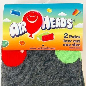 NWT Gorgeous 2 Pack AIRHEADS OS Colorful Ballon’s Rainbow Striped Low Cut Socks