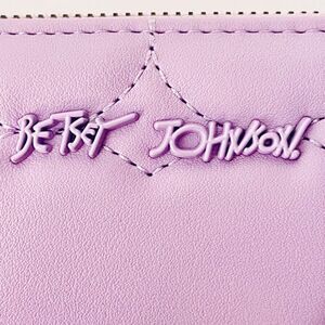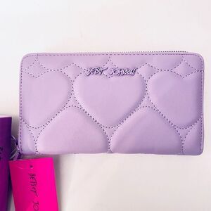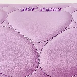 Betsey Johnson Purple Quilted Hearts Pu Leather Zip Around Wallet + Detachable Wrist Strap in Gift Box.
