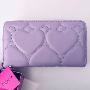 NWT Gorgeous Betsey Johnson Quilted Hearts Purple Zip All Around Wristlet Wallet