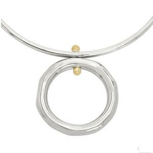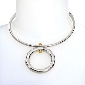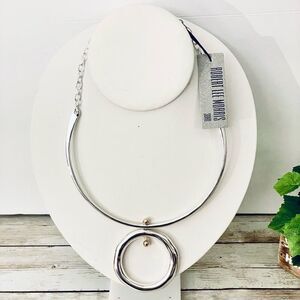 NWT Gorgeous Robert Lee Morris Silver Gold Open Circle Pendant Choker Necklace