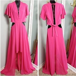 NWT Gorgeous XOXO Sz S Pink Cut-Out Hi-Low Casual Maxi Dress
