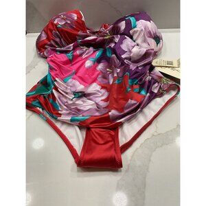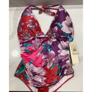 NWT Gottex One-Piece Slimming Halter Top Floral Bathing Suit Size 14