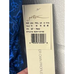 NWT Gottex Sz 14 Petrol Blue Mehndi V-Neck Ruffled Shoulder One Piece Swimsuit
