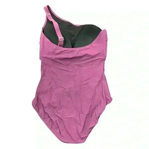 Gottex one shoulder swimsuit. Size 14. Color - plum / multi , wildflower design. Soft cup bra. Adjustable strap.