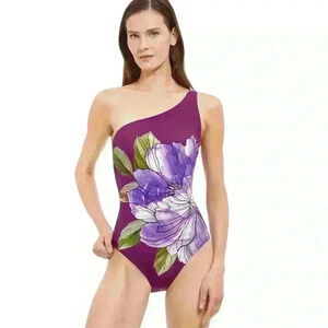 NWT Gottex Wild Flower One Shoulder One Piece Swimsuit Size 14