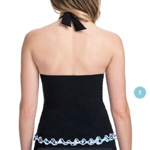 NWT Gottex Women Lettuce‎ Ruffle Pinwheel V Neck Tankini Swimsuit Black Sz 6 $88