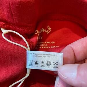 Both pieces size 10/12. Red tank with white trim. Front button detail. Red shorts with white trim. Elastic waistband. Bamboo viscose/organic cotton blend. Soft and silky feel.