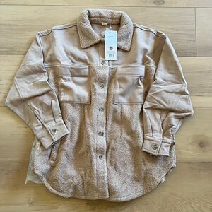 NWT Goumi Kids Harvest Sherpa Farm Jacket SZ L / XL Womens Tan Shacket Oversized