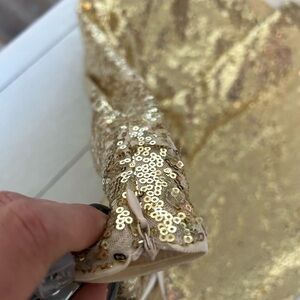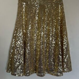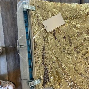 New with tags gorgeous all over gold sequin skirt see additional pictures, side zipper perfect for a special events or a special occasion. See additional pictures. Thanks for looking happy shopping measurements. Also seen in pitcher are in inches.