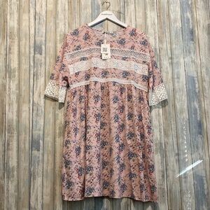 NWT Grace Karin Pink Floral Dress with Embroidered lace details | Medium NWT