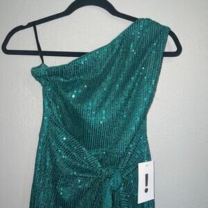 NWT Grace Karin Sequined Asymmetric One Shoulder Bodycon Midi Dress Green Size 6