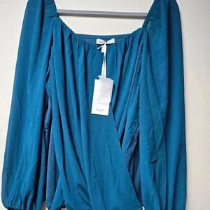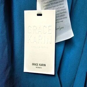 NWT Grace Karin Simple & Stylish Women's XL Blue Long Sleeved Blouse