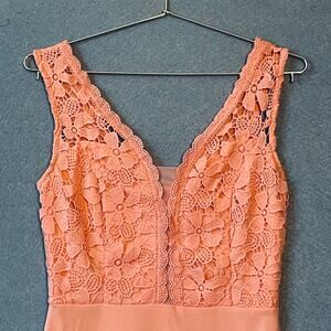 New With Tags Excellent Condition No Stains or Rips, Grace Karin Women's Sleeveless Deep V Neck Casual Cocktail Pencil Dress Size Small (see Pics for All Measurements) Features Floral Lace Pattern, Deep V-Neck Soft Touch Polyester Spandex Stretch Blended Fabric in a Beautiful Coral Color Perfect for All Occasions