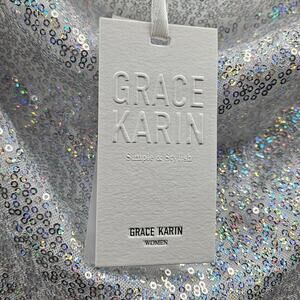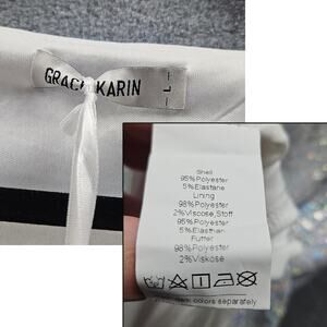 NWT Grace Karin Women L Sequin Cocktail Dress White Off Shoulder Party Occasion
