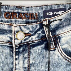NWT Grace in LA Women's High Waist Side Stripe Blue Skinny Denim Jeans Size 25