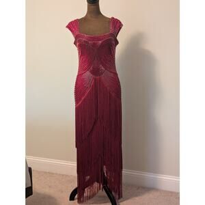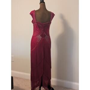 NWT Graceful Gradient Bead Fringe Flapper 1920's Dress w/headpiece Red 4