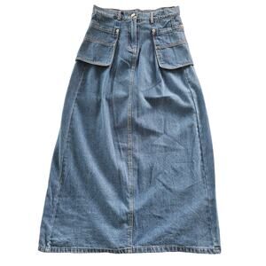 NWT Gracia Blue Denim Midi Skirt Size S High Waist Utility Pockets Jean Skirt