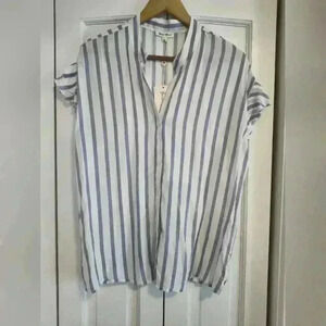 NWT Grand & Greene Top | Blue and White Striped | Short Sleeve | Small
