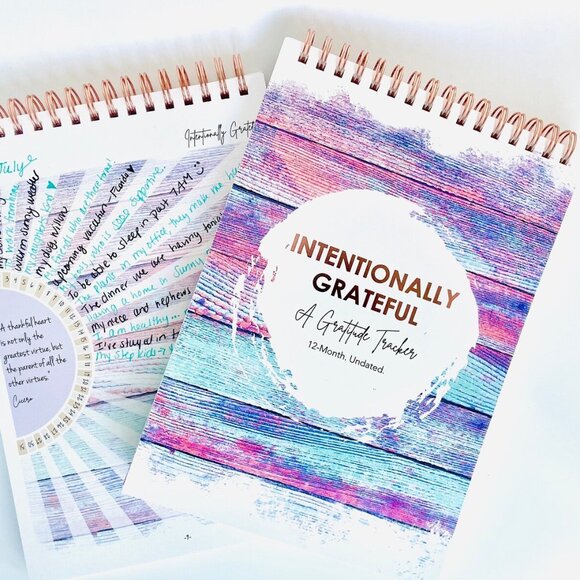 12-Month Undated Daily Gratitude Journal Grateful Planner to Practice Gratitude Gift for Women. This beautiful sunburst gratitude journal can be used by anyone to write what you are grateful for every day, especially if you are limited on time- it's so simple and easy to use this gratitude tracker. Write one thing you are grateful for each day in this 12-month undated gratitude tracker, if you're stuck refer to the 75 gratitude prompts inside. After a few days of using the journal, you will have instilled the habit of practicing gratitude and it will become a part of your life.