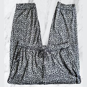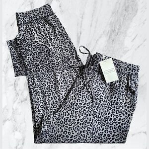 NWT Gray & Black Leopard Print Relaxed Fit Drawstring Waist Jogger Casual Pants