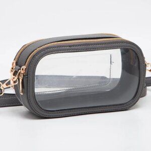 Tags: Gray clear bag, stadium clear bag, clear stadium purse, see-through crossbody, game day purse, concert clear bag, NWT clear bag, oval clear purse, double zipper bag, clear vinyl bag, stadium-approved bag, festival bag, tailgate purse