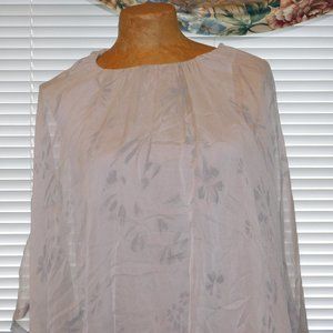 Could be worn off shoulder. Elastic at neckline and on bottom of blouse.
