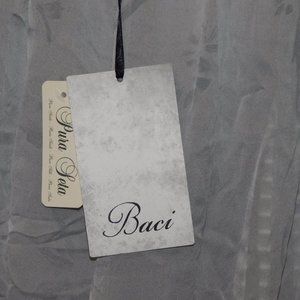 Brand new, still has tags. Lovely gray print blouse from BACI. One size(but seems more like small to medium. Made in Italy.