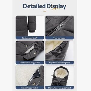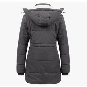 NWT Gray Puffer Jacket with Removable Hood and Quilted Design and Sherpa inside
