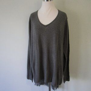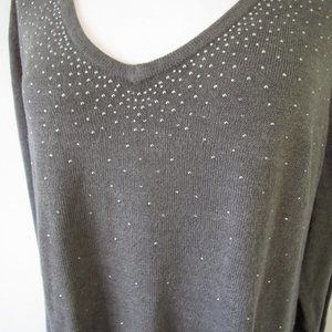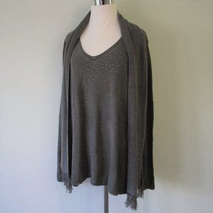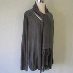 New With Tags Karen Scott Charcoal Gray Bling Embellished Sweater & Scarf 2 Piece Set Winter Holiday PLUS SIZE