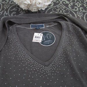 💕 NWT Gray Rhinestone Embellished Sweater Scarf Set